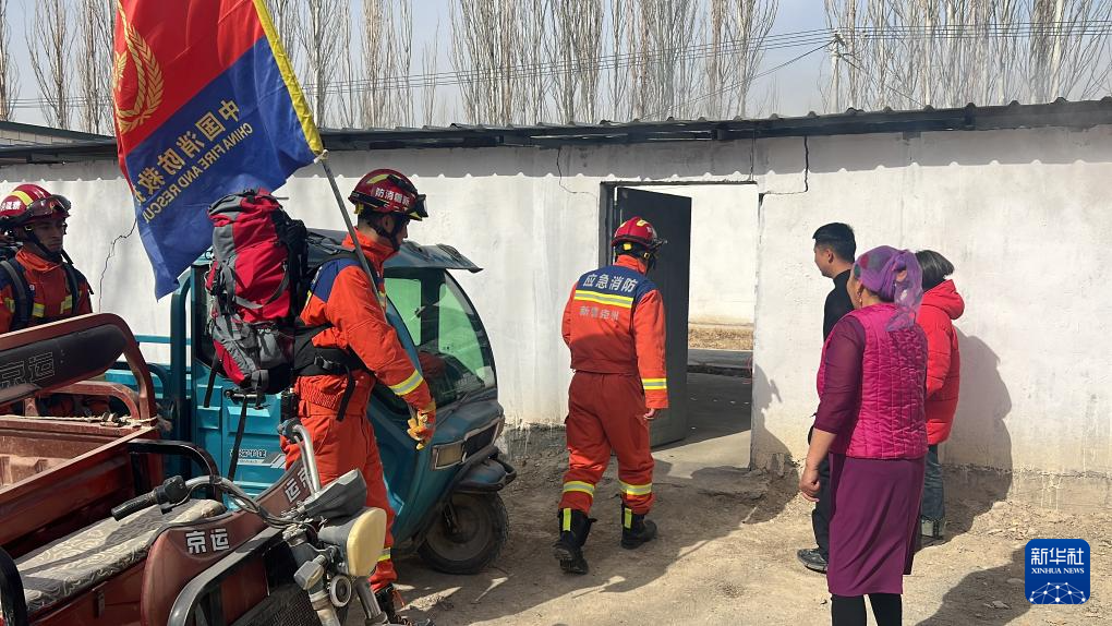 2月25日,新疆克孜勒蘇柯爾克孜自治州阿圖什市交通路消防救援站指戰(zhàn)員深入附近村落開展震后房屋排查。新華社發(fā)(肉孜買買提·艾山吐爾 攝)