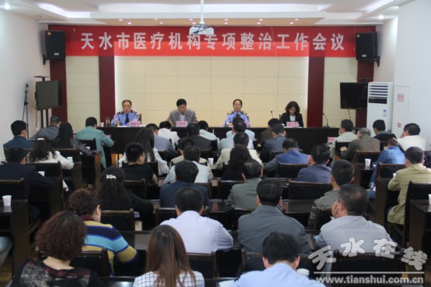 為了進(jìn)一步整頓醫(yī)療秩序,鞏固我市打擊非法行醫(yī)取得的階段性成果,貫徹落實(shí)國(guó)家衛(wèi)計(jì)委、省衛(wèi)計(jì)委關(guān)于打擊非法行醫(yī)專項(xiàng)整頓文件及電視電話會(huì)議精神,切實(shí)維護(hù)人民群眾健康權(quán)益,針對(duì)當(dāng)前我市醫(yī)療市場(chǎng)存在的突出問題,2015年5月14日,天水市醫(yī)療機(jī)構(gòu)專項(xiàng)整治工作會(huì)議在市衛(wèi)生監(jiān)督所隆重召開。參加會(huì)議的有天水市衛(wèi)生和計(jì)劃生育委員會(huì)副主任杜維成,天水市衛(wèi)生監(jiān)督所所長(zhǎng)張春英、副所長(zhǎng)潘臨平,天水市衛(wèi)生和計(jì)劃生育委員會(huì)法監(jiān)科負(fù)責(zé)人雷艷,各縣(區(qū))衛(wèi)生和計(jì)生局(衛(wèi)生局)局長(zhǎng),市、區(qū)疾控中心、市中心血站、秦州區(qū)內(nèi)二級(jí)以上醫(yī)院、民營(yíng)醫(yī)院、廠礦醫(yī)院、社區(qū)衛(wèi)生服務(wù)中心負(fù)責(zé)人以及市衛(wèi)生監(jiān)督所和麥積分所相關(guān)衛(wèi)生監(jiān)督員共計(jì)70余人。市衛(wèi)生監(jiān)督所所長(zhǎng)張春英主持會(huì)議,市衛(wèi)生和計(jì)劃生育委員會(huì)副主任杜維成做了重要講話。