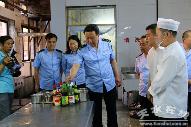 為做好高考期間餐飲食品安全保障工作,6月5日下午,天水市食品藥品監(jiān)督管理局黨委書記、局長(zhǎng)陳克孝帶領(lǐng)市局相關(guān)科室、市食品稽查局、秦州區(qū)食品藥品監(jiān)管局執(zhí)法人員,對(duì)高考監(jiān)考老師定點(diǎn)就餐的2家餐飲單位和考點(diǎn)附近小型餐館進(jìn)行了重點(diǎn)監(jiān)督檢查。