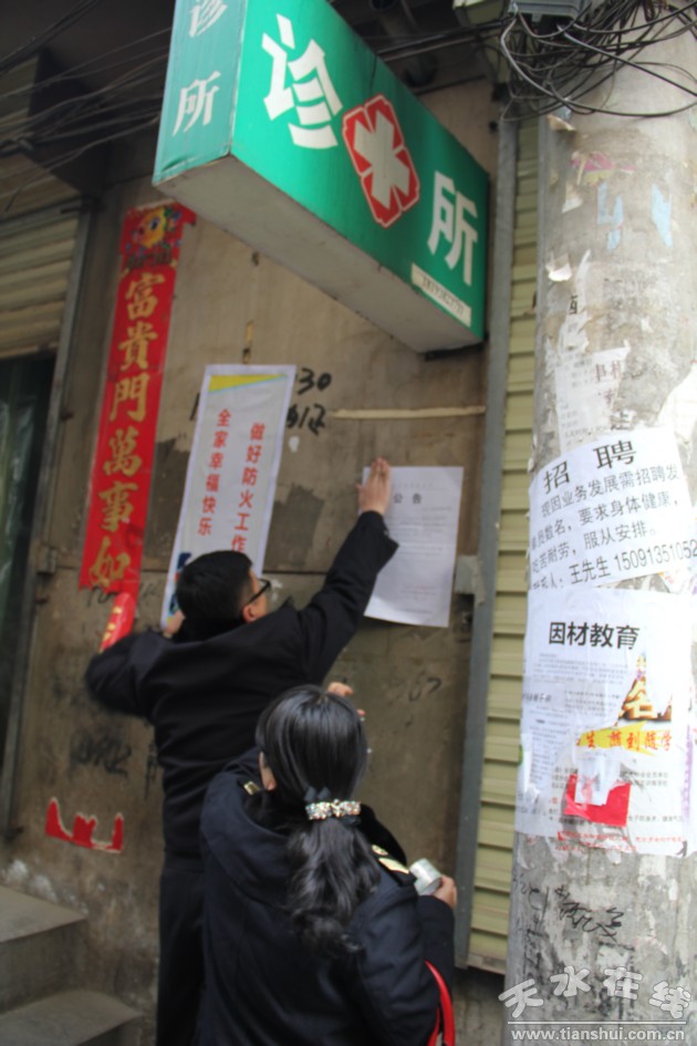 2016年2月1日,是一年一度的農(nóng)歷小年,在全市人民喜迎小年之際,天水市衛(wèi)生和計(jì)劃生育綜合監(jiān)督執(zhí)法局醫(yī)療機(jī)構(gòu)監(jiān)管科的衛(wèi)生監(jiān)督員全體出動(dòng),在副局長(zhǎng)潘臨平的帶領(lǐng)下,深入市區(qū)“城中村”—東方紅村,查處非法行醫(yī)行為。這是繼2016年1月26日-27日市衛(wèi)計(jì)委聯(lián)合市社會(huì)管理綜合治理委員會(huì)辦公室、市公安局、市食藥監(jiān)局、市工商局、市衛(wèi)生計(jì)生綜合監(jiān)督執(zhí)法局等部門(mén)在市區(qū)內(nèi)開(kāi)展春節(jié)前打擊非法行醫(yī)專(zhuān)項(xiàng)執(zhí)法檢查之后的又一重拳出擊,集中力量打擊非法行醫(yī)“黑診所”。