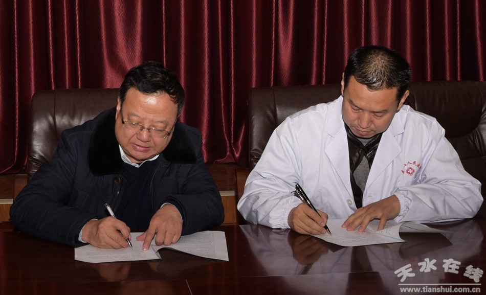 △天水市第一人民醫(yī)院院長(zhǎng)問肅生與秦安縣人民醫(yī)院院長(zhǎng)成懿簽訂胸痛中心建設(shè)協(xié)議