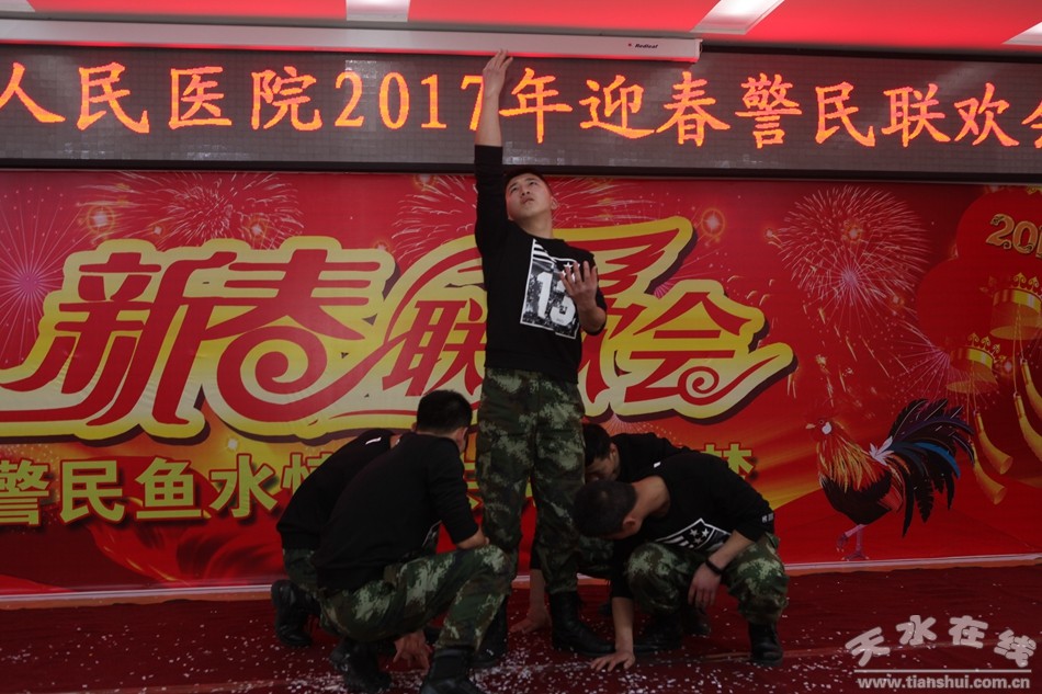 爆竹聲聲辭舊歲,載歌載舞賀新年。元月20日下午,天水市第三人民醫(yī)院與天水市公安消防支隊(duì)共同舉辦了主題為“警民魚水情 共筑中國(guó)夢(mèng)”的警民迎春聯(lián)歡會(huì)。市消防支隊(duì)政委李延奇、副支隊(duì)長(zhǎng)楊耀軍、參謀長(zhǎng)馬超群、政治處主任王曉霞、防火處處長(zhǎng)袁應(yīng)龍、后勤處副處長(zhǎng)牛雯及40多名消防戰(zhàn)士,與天水市第三人民醫(yī)院200多名干部職工共慶新春佳節(jié)。