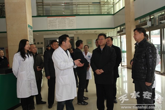 1月25日上午,市政府副市長(zhǎng)張建杰、市政府副秘書長(zhǎng)張有信等一行6人,在市衛(wèi)計(jì)委黨委書記、主任杜維成陪同下,來到天水市第三人民醫(yī)院,看望慰問了市三院醫(yī)護(hù)人員。