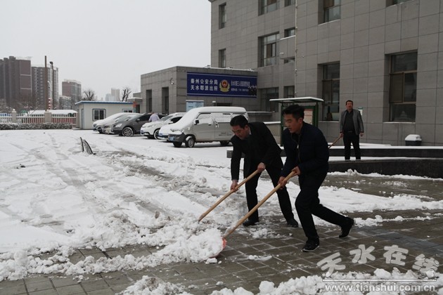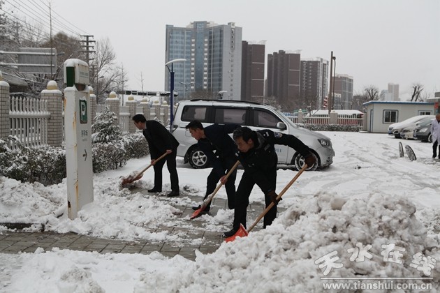 為了防止病人和行人在行走過程中滑倒而發(fā)生意外,避免院內(nèi)車輛因打滑而發(fā)生不必要的安全事故,天剛放亮,天水市第三人民醫(yī)院丁志杰院長就親自帶領(lǐng)保衛(wèi)科及總務(wù)科的人員,開始了清掃路面積雪的行動。大家干得熱火朝天,厚厚的積雪不知不覺就已經(jīng)除去了大半,大家臉上都洋溢著勞動所帶來的喜悅。