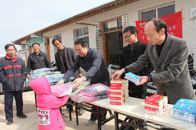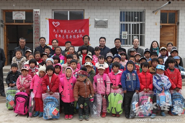 為弘揚(yáng)雷鋒精神,深化“雙聯(lián)”行動(dòng)和精準(zhǔn)扶貧工作,2月28日,天水市第三人民醫(yī)院院長(zhǎng)丁志杰、副院長(zhǎng)陳元前帶領(lǐng)醫(yī)院“雙聯(lián)”幫扶干部,來(lái)到“雙聯(lián)”點(diǎn)武山縣灘歌鎮(zhèn)杏灣村開展愛心捐贈(zèng)幫扶活動(dòng),為杏灣村小學(xué)貧困學(xué)生帶去了醫(yī)院幫扶干部自發(fā)捐贈(zèng)購(gòu)買的價(jià)值4000余元的米奇書包、文具袋、碳素筆、新華字典、成語(yǔ)詞典等學(xué)習(xí)用具,為農(nóng)村留守兒童的學(xué)習(xí)成長(zhǎng)盡微薄之力,得到當(dāng)?shù)卣痛迕竦母叨荣潛P(yáng)。