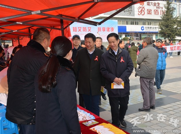 本次宣傳活動由天水市性病艾滋病防治領(lǐng)導小組辦公室、天水市衛(wèi)計委主辦,天水市疾控中心承辦,秦州區(qū)性病艾滋病防治領(lǐng)導小組辦公室、秦州區(qū)衛(wèi)計局、秦州疾控中心協(xié)辦。天水市政協(xié)副主席蘇定武、市衛(wèi)計委主任杜維成、市衛(wèi)計委副主任高紀平、市疾控中心主任李西林、市疾控中心副主任全福才、秦州區(qū)衛(wèi)計局及疾控中心相關(guān)領(lǐng)導參與了現(xiàn)場活動。各位領(lǐng)導紛紛在抗擊艾滋宣傳橫幅簽字,并倡議廣大市民積極參與我市艾滋病防治工作,了解艾滋病防治的知識和政策,主動檢測,保護自身,共享健康。市直醫(yī)療機構(gòu)設(shè)立了義診咨詢點,在每個咨詢點各家醫(yī)療機構(gòu)都精心準備了內(nèi)容豐富、形式多樣的宣傳資料,有性病艾滋病相關(guān)知識政策的宣傳版面、宣傳冊(折頁)、宣傳撲克、宣傳洗浴袋等,同時免費發(fā)放了安全套等防艾物品。尤其是現(xiàn)場精心組織的防艾文藝演出活動,吸引了大量的群眾觀看,文藝演出通過歌唱、舞蹈、小品、舞刀等節(jié)目,在節(jié)目中穿插艾滋病預防知識,使廣大市民在歡聲笑語中掌握了防艾的知識,部分市民還在現(xiàn)場設(shè)立的艾滋病檢測咨詢點進行了HIV抗體檢測。