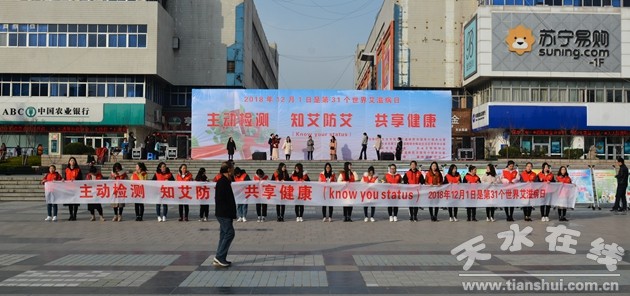 2018年12月1日是第31個“世界艾滋病日”。由天水市性病艾滋病防治工作領(lǐng)導小組統(tǒng)一安排部署,在市中心龍城廣場了開展了主題為“主動檢測,知艾防艾,共享健康”的宣傳活動,通過本次活動大力宣傳普及預防艾滋病知識,動員全民主動進行艾滋病抗體檢測,共同抗擊艾滋病。