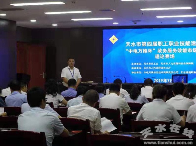 7月19日至20日,天水市總工會(huì)、天水市人力資源和社會(huì)保障局、天水市政府政務(wù)大廳聯(lián)合舉辦了2019年全市政務(wù)大廳“中電萬(wàn)維杯”服務(wù)效能和“博通杯”服務(wù)禮儀技能決賽。此次比賽旨在提高全市政務(wù)大廳工作效能,改進(jìn)政務(wù)大廳工作作風(fēng),在全市各級(jí)政務(wù)大廳弘揚(yáng)勞動(dòng)精神、勞模精神。來(lái)自全市兩區(qū)五縣以及市直單位的97人參加了兩項(xiàng)決賽。