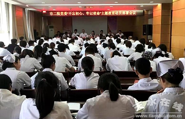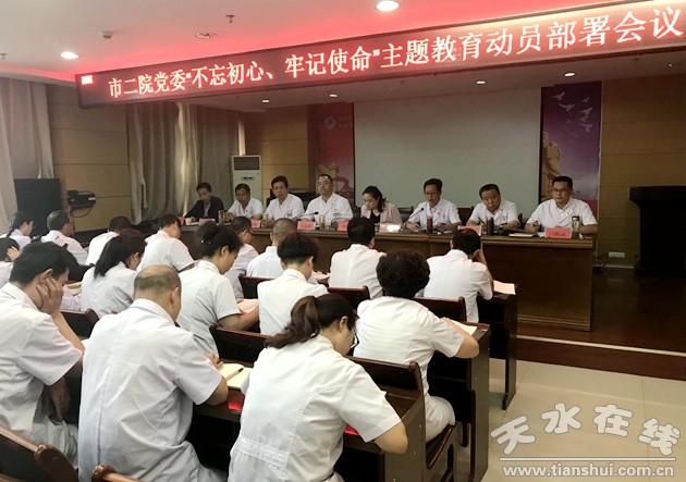 9月12日下午,天水市第二人民醫(yī)院在內(nèi)科樓14層會(huì)議室召開“不忘初心、牢記使命”主題教育動(dòng)員部署大會(huì),深入學(xué)習(xí)貫徹習(xí)近平總書記重要講話精神和黨中央決策部署,落實(shí)省、市、區(qū)委和市衛(wèi)健委關(guān)于開展主題教育工作的要求,對(duì)全院開展主題教育進(jìn)行動(dòng)員部署。