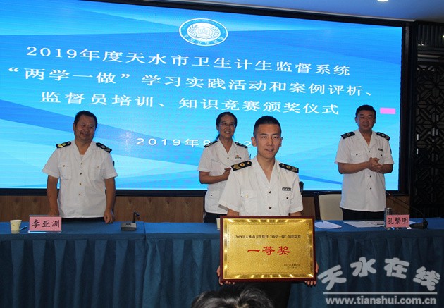 9月12日舉行了“兩學(xué)一做”學(xué)習(xí)實(shí)踐活動(dòng)知識(shí)競(jìng)賽。競(jìng)賽分筆試和競(jìng)答兩個(gè)環(huán)節(jié)。通過(guò)層層選拔,來(lái)自市、縣(區(qū))的24名基層監(jiān)督員參加了個(gè)人筆試。市局陳錄軍同志以?xún)?yōu)異成績(jī)榮獲個(gè)人一等獎(jiǎng),黃子涵、李輝、王子茹、冉慧玲、邱小梅分獲個(gè)人二、三等獎(jiǎng)。市、縣(區(qū))監(jiān)督機(jī)構(gòu)的8支代表隊(duì)參加了競(jìng)答環(huán)節(jié)的比賽。競(jìng)答比賽分必答、搶答、風(fēng)險(xiǎn)、加賽四個(gè)環(huán)節(jié)。各參賽隊(duì)選手準(zhǔn)備充分,沉著應(yīng)戰(zhàn),競(jìng)賽現(xiàn)場(chǎng)氣氛緊張、熱烈,真正賽出了成績(jī),賽出了水平,賽出了天水衛(wèi)生健康監(jiān)督人的風(fēng)采。最后,通過(guò)個(gè)人筆試成績(jī)與團(tuán)隊(duì)競(jìng)答成績(jī)按比例匯總,市局二隊(duì)取得集體一等獎(jiǎng);市局一隊(duì)、張家川回族自治縣衛(wèi)計(jì)局綜合監(jiān)督執(zhí)法所代表隊(duì)取得集體二等獎(jiǎng);甘谷縣衛(wèi)計(jì)局綜合監(jiān)督執(zhí)法所、武山縣衛(wèi)計(jì)局綜合監(jiān)督執(zhí)法所、秦安縣衛(wèi)計(jì)局綜合監(jiān)督執(zhí)法所取得集體三等獎(jiǎng);麥積分局、清水縣衛(wèi)計(jì)局綜合監(jiān)督執(zhí)法所獲得優(yōu)秀組織獎(jiǎng)。