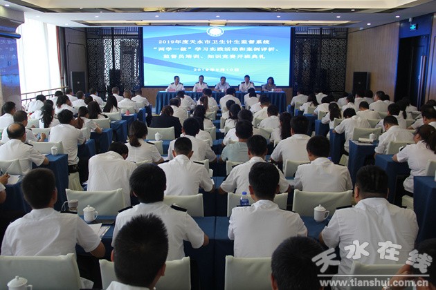 為深入學(xué)習(xí)貫徹習(xí)近平新時(shí)代中國(guó)特色社會(huì)主義思想,認(rèn)真貫徹落實(shí)黨的十九大精神,以實(shí)際行動(dòng)自覺(jué)“尊崇憲法、學(xué)習(xí)憲法、遵守憲法、維護(hù)憲法、運(yùn)用憲法”,不斷加強(qiáng)我市衛(wèi)生健康執(zhí)法監(jiān)督隊(duì)伍建設(shè),提升衛(wèi)生健康執(zhí)法監(jiān)督能力,由天水市衛(wèi)生計(jì)生委綜合監(jiān)督執(zhí)法局主辦的2019年度“兩學(xué)一做”學(xué)習(xí)實(shí)踐活動(dòng)和監(jiān)督員培訓(xùn)、案例評(píng)析、知識(shí)競(jìng)賽”于2019年9月10日至12日如期舉辦。市衛(wèi)健委副主任王引平、市衛(wèi)計(jì)委綜合監(jiān)督執(zhí)法局領(lǐng)導(dǎo)班子全體成員、各縣(區(qū))衛(wèi)健局綜合監(jiān)督執(zhí)法機(jī)構(gòu)領(lǐng)導(dǎo)以及來(lái)自全市基層衛(wèi)生健康監(jiān)督執(zhí)法人員共170余人參加了本次活動(dòng)。