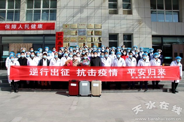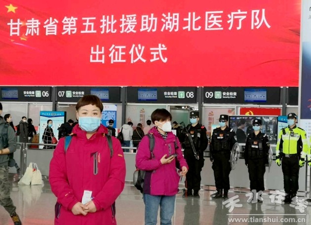 來到醫(yī)院,黨委書記李德珍、院長崇復(fù)生及其他院領(lǐng)導(dǎo)對我們?nèi)f般叮囑;并為我準(zhǔn)備了充足的醫(yī)療物資,護(hù)理部主任李淑梅及李月琴護(hù)士長、各位同事更是積極的幫助我們收拾、整理隨身皮箱,確保無一遺漏,并再三地囑咐我一定保護(hù)好自己,做好防護(hù),努力工作!我感動(dòng)極了,也默默地告誡自己:一定要努力工作,平安歸來!隨后,我隨同院領(lǐng)導(dǎo)和送行的同事們來到天水市衛(wèi)健委,同此次支援武漢的兄弟醫(yī)院的戰(zhàn)友集合。