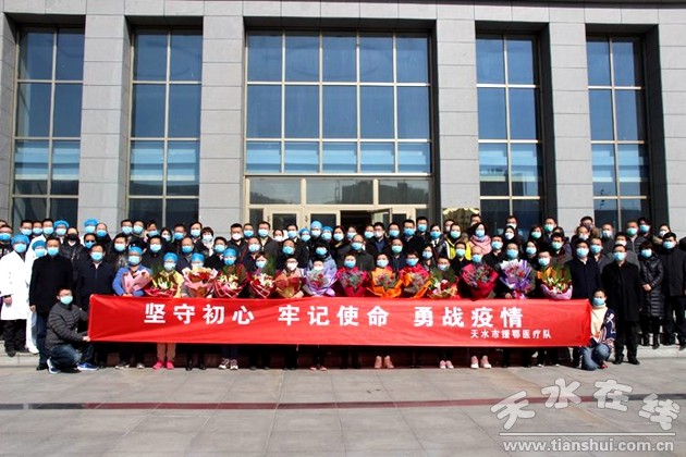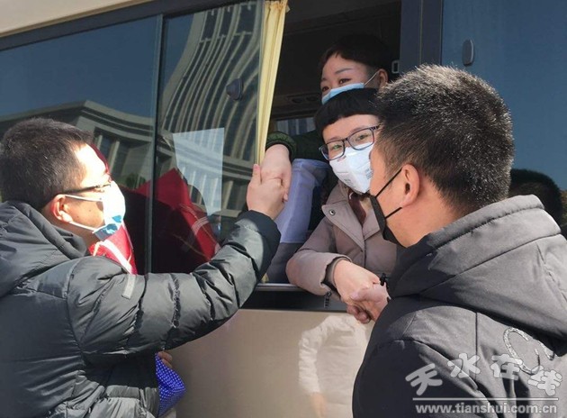 在送行儀式上,天水市委常委、宣傳部長張建杰、副市長逯克宗、衛(wèi)健委陳主任等領(lǐng)導(dǎo)為弛援武漢的14名隊(duì)員送行、囑托,希望我們“堅(jiān)守初心、牢記使命,勇戰(zhàn)疫情,早日凱旋,平安歸來!”隨著領(lǐng)導(dǎo)的出發(fā)號令,汽車緩緩移動(dòng),看著窗外送行的家人、同事,揮別的雙手、不舍和擔(dān)心的眼神,我既傷感又信心倍增,有這么多堅(jiān)強(qiáng)的后盾,我們一定會早日戰(zhàn)勝疫情,凱旋而歸!