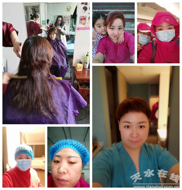 去醫(yī)院集合前,我和我的另一位戰(zhàn)友一起將陪伴了多年的長發(fā)剪掉了,眼看著一縷縷頭發(fā)飄落在地上,我堅(jiān)持許久的眼淚還是落下來了,但心里想:頭發(fā)剪了它還會長,當(dāng)前疫情不能等?粗R子里傻傻的“鍋蓋頭”,哭著的我笑了,感覺內(nèi)心的力量更加堅(jiān)定。