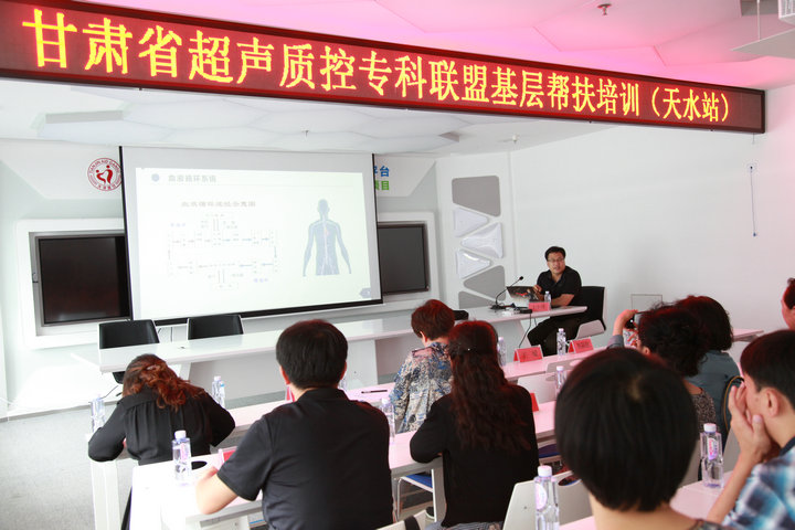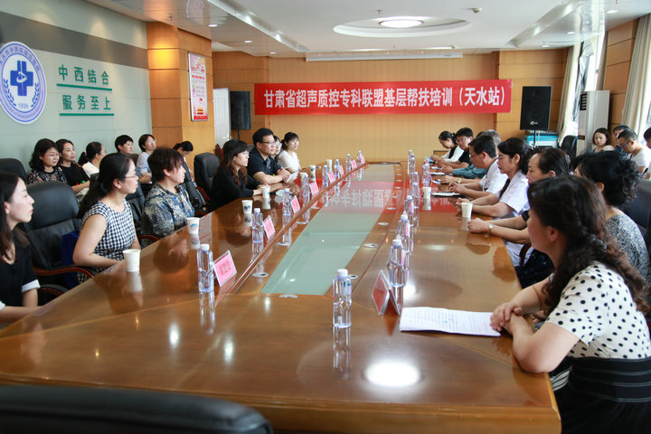 為落實(shí)緊密型專科聯(lián)盟工作任務(wù),實(shí)現(xiàn)省、市、縣醫(yī)療服務(wù)同質(zhì)化,提升全省超聲診斷服務(wù)能力,推動(dòng)省內(nèi)超聲檢查結(jié)果互認(rèn)工作,8月8日,“甘肅省超聲質(zhì)控?坡(lián)盟基層幫扶培訓(xùn)(天水站)”在天水市中西醫(yī)結(jié)合醫(yī)院(市二院)內(nèi)科大樓14樓會(huì)議室舉行。中國(guó)醫(yī)師協(xié)會(huì)超聲分會(huì)副會(huì)長(zhǎng)、甘肅省醫(yī)師協(xié)會(huì)超聲分會(huì)會(huì)長(zhǎng)、甘肅省超聲質(zhì)控中心主任、蘭大二院超聲醫(yī)學(xué)中心聶芳教授及其團(tuán)隊(duì)王小鋒主任醫(yī)師、車巖主任醫(yī)師、屈登雅副主任醫(yī)師、王媛副主任醫(yī)師、董甜甜醫(yī)師、李靜醫(yī)師、湯燕醫(yī)師一行8人應(yīng)邀出席會(huì)議并進(jìn)行了超聲造影、介入超聲、心臟、肌骨、乳腺、甲狀腺等亞專業(yè)難病例會(huì)診、規(guī)范操作演示及精彩的授課。會(huì)議由市二院超聲科副主任陳萍主持,聶芳教授致辭,天水市兩區(qū)五縣超聲科主任及業(yè)務(wù)骨干約60余人參加此次培訓(xùn)。