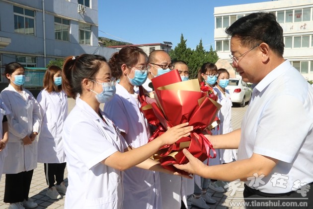 8月19日,天水市委常委、宣傳部部長張建杰帶領市衛(wèi)生健康委黨組書記、主任陳克孝、副主任李姝、市計生協秘書長楊智才等同志,深入市五院看望慰問奮戰(zhàn)在一線的醫(yī)務人員,并代表市委、市政府向市五院全體醫(yī)務工作者致以節(jié)日問候和崇高敬意。