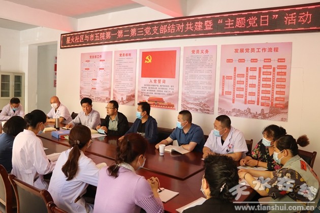 6月4日上午,天水市第五人民醫(yī)院各黨支部組織30余名黨員與麥積區(qū)社棠鎮(zhèn)星火社區(qū)開(kāi)展結(jié)對(duì)共建暨“主題黨日”活動(dòng),活動(dòng)由星火社區(qū)黨委書(shū)記李滿順主持。