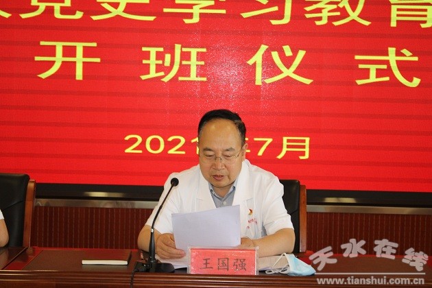 7月23日上午,天水市婦幼保健院舉行第二次黨史學(xué)習(xí)教育專題讀書班開班儀式。黨委書記王國(guó)強(qiáng)同志主持會(huì)議并作講話。會(huì)議對(duì)讀書班進(jìn)行了安排部署,宣讀了黨史學(xué)習(xí)教育讀書班實(shí)施方案。院領(lǐng)導(dǎo)班子成員、各黨支部書記、科主任、護(hù)士長(zhǎng)及全體黨員參加會(huì)議。