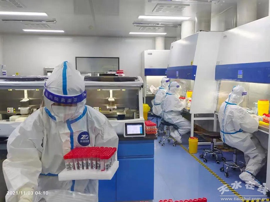 自10月24日,第一輪全體市民大規(guī)模核酸篩查開(kāi)始,到11月6日上午7時(shí)起開(kāi)展全市第八輪大規(guī)模核酸檢測(cè),天水市第一人民醫(yī)院檢驗(yàn)科的全體人員,每一天每一刻,都在以“一分、一秒”為計(jì)量單位中度過(guò),高要求、高壓力、高強(qiáng)度,沒(méi)有過(guò)片刻的停歇,不能有片刻的喘息。責(zé)任重如山,這是屬于檢驗(yàn)人的使命擔(dān)當(dāng)。