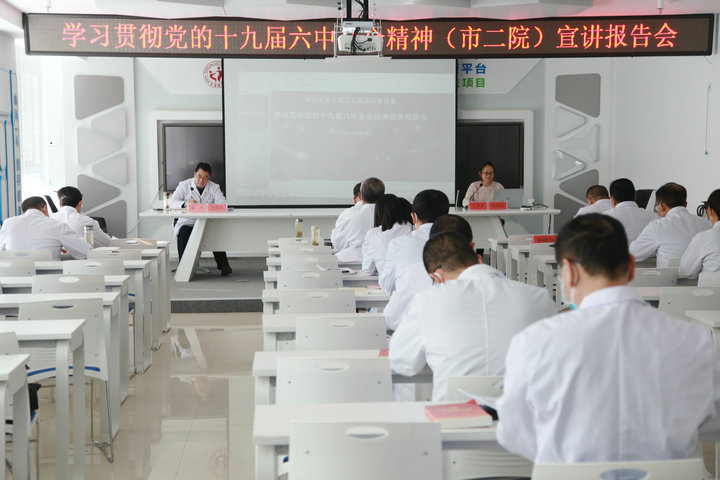 12月21日下午,天水市第二人民醫(yī)院舉辦學(xué)習(xí)宣傳貫徹黨的十九屆六中全會精神宣講報告會,邀請麥積區(qū)委講師團成員、區(qū)委黨校高麗娟老師對黨的十九屆六中全會精神進行解讀。院黨委書記麻赪主持會議,并作了總結(jié)講話。黨委委員、班子成員和各支部書記、黨建辦、黨政辦負責(zé)人共40余人參加報告會。
