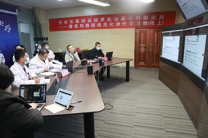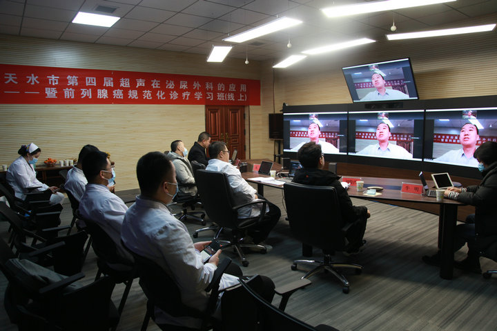 12月25日,由省繼教委和市衛(wèi)健委主辦,天水市中西醫(yī)結(jié)合醫(yī)院(市二院)承辦的省繼續(xù)教育項目——天水市第四屆超聲在泌尿外科應(yīng)用暨前列腺癌規(guī)范化診療學(xué)習(xí)班在市二院遠(yuǎn)程會診中心舉行。特邀西安交通大學(xué)第一附屬醫(yī)院陳興發(fā)、梁亮教授,鄭州大學(xué)附屬第一醫(yī)院劉俊肖教授,蘭州大學(xué)第二醫(yī)院尚攀峰教授及市二院院長唐志鋒、副院長高國明等專家出席會議。會議采用線上模式,由市二院泌尿外科主任陳鐵峰主持,天水、隴南各地州市的60余名醫(yī)護(hù)人員在線參加會議。