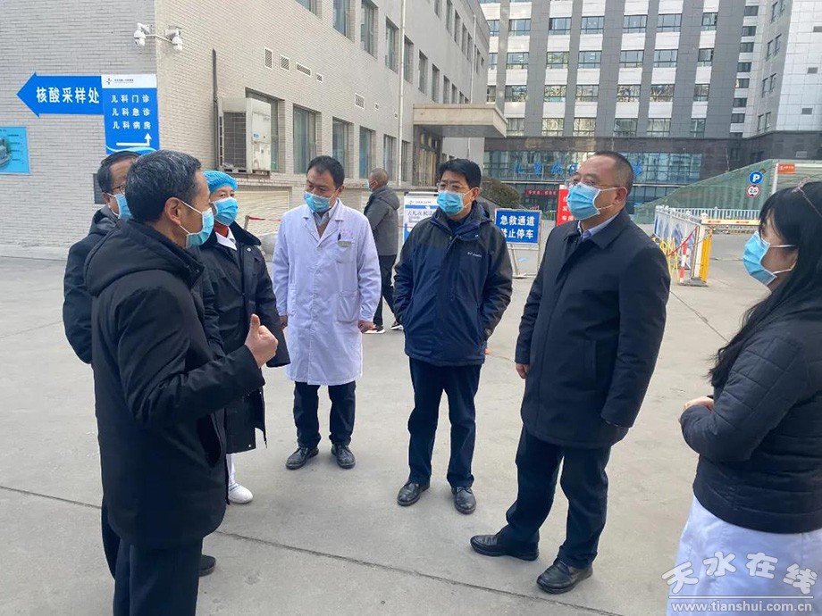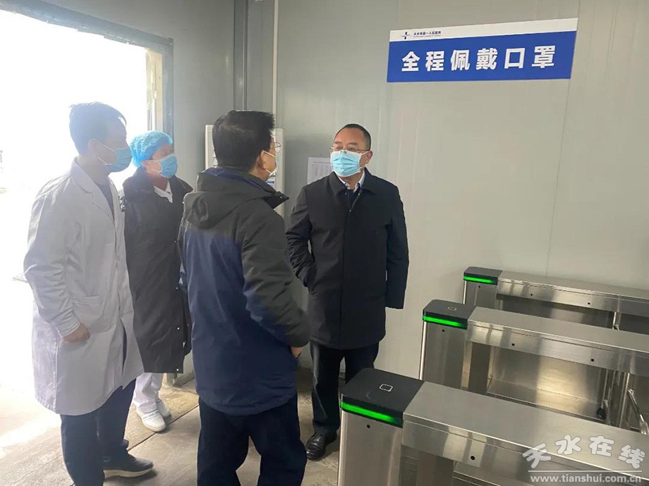 1月10日上午,天水市一院院長(zhǎng)王定新帶領(lǐng)分管副院長(zhǎng)及相關(guān)科室負(fù)責(zé)人深入醫(yī)院出入口、急診、超聲科等重點(diǎn)場(chǎng)所,現(xiàn)場(chǎng)督察醫(yī)院疫情防控工作。