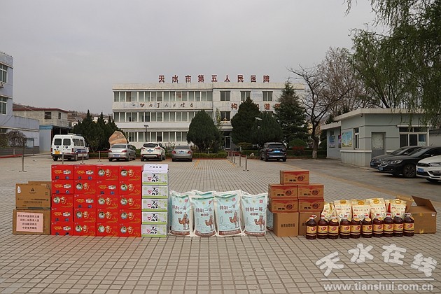 3月29日,市衛(wèi)健委帶領(lǐng)市中醫(yī)醫(yī)院、甘肅第二建設(shè)集團(tuán)有限責(zé)任公司、天水新旗食品有限責(zé)任公司和天水盈麥香食品有限公司慰問天水市第五人民醫(yī)院醫(yī)療救治組一線醫(yī)務(wù)人員,捐贈奶粉、養(yǎng)生粥、面包、呱呱、大米、面粉、食用油等食品共計12860元。市衛(wèi)健委副主任李姝,市中醫(yī)院黨委書記王志剛、副院長李曉峰,市第五人民醫(yī)院黨總支書記、院長潘臨平、副院長縣錦春、馬茂忠、院長助理楊宏斌參加捐贈儀式。