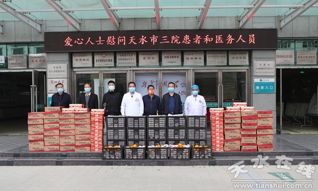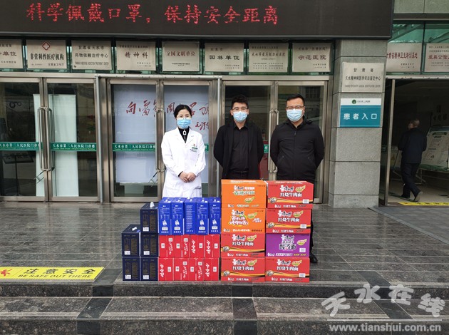 新冠肺炎的再度肆虐,又一次牽動(dòng)起愛心企業(yè)的強(qiáng)烈社會(huì)責(zé)任感和使命感,3月30日、31日,天水祥鑫恒順?biāo)a(chǎn)品有限公司、陜西建華環(huán)保產(chǎn)業(yè)有限公司、天水鴻潔源建材有限責(zé)任公司、甘肅天一醫(yī)療科技有限公司負(fù)責(zé)人相繼為我院住院患者及在疫情防控一線的醫(yī)務(wù)工作者捐贈(zèng)28箱金鑼王中王火腿腸、22件(700斤)耙耙柑、58箱方便面、10箱牛奶等生活物資,助力全市打贏疫情防控阻擊戰(zhàn)。醫(yī)院黨委書記丁志杰及班子成員參加捐贈(zèng)活動(dòng)。