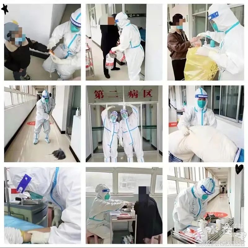 為了更好地完成救治任務,這支隊伍由70、80、90不同年齡的隊員分層配置,不僅有助于對復雜情況的研判決策、部署和落實,又可以提高工作效率、增強隊伍戰(zhàn)斗力。在接管病區(qū)后,鑒于救治患者以輕型和無癥狀感染者為主,護理部副主任何永麗和護士長孫璽瑤組織大家商討,為患者制定出以心理疏導為主的人文關懷護理方案。面對年幼的孩子,護士是“臨時媽媽”,面對中學生,護士是“知心大姐”,面對80歲的高齡老人,護士又是“親閨女”,在隔離病房的每一天,護士們精心護理著,用心照護著。