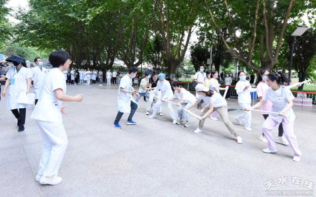 為慶祝中國共產(chǎn)黨成立101周年,弘揚偉大建黨精神,活躍職工文化生活,增強(qiáng)體質(zhì),加強(qiáng)科室和職工之間的交流,展現(xiàn)醫(yī)務(wù)人員健康向上、勇攀高峰的職業(yè)精神,營造和諧、團(tuán)結(jié)、創(chuàng)新、發(fā)展的醫(yī)院文化。6月28日下午,天水市第一人民醫(yī)院在平安廣場舉辦職工趣味運動會,來自全院27個支部的19支代表隊500余人參加了包括流水運球、踩氣球、一圈到底、30米往返接力(智力答題)等4個項目的比賽。經(jīng)過激烈的角逐,對每個參賽項目的一、二、三等獎進(jìn)行了表彰獎勵。