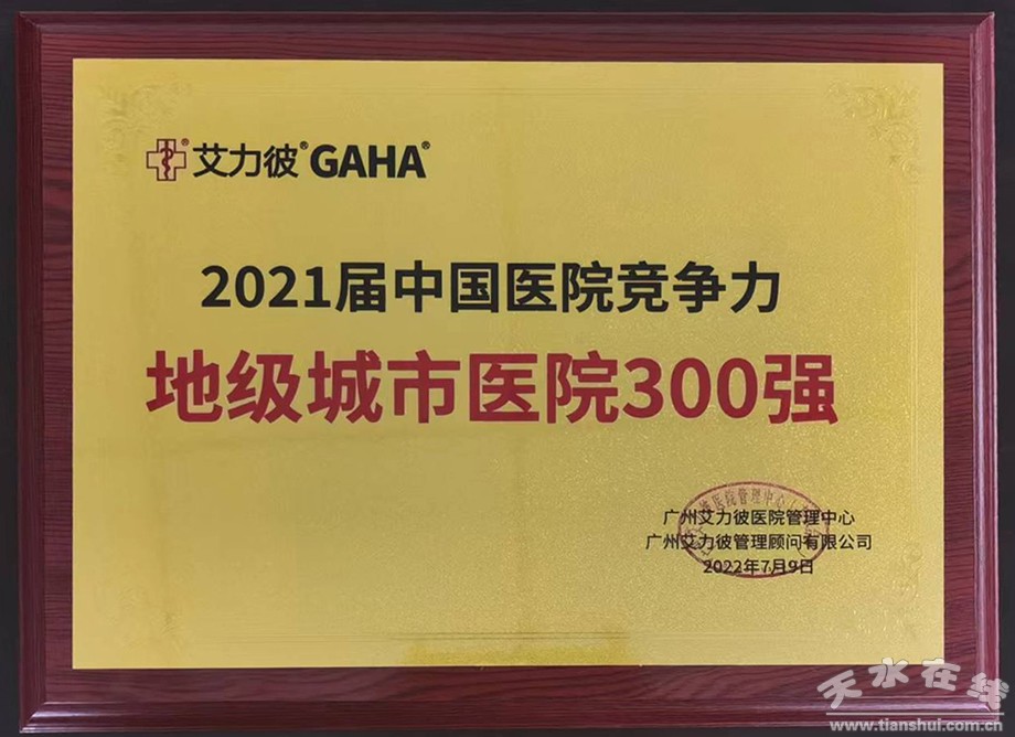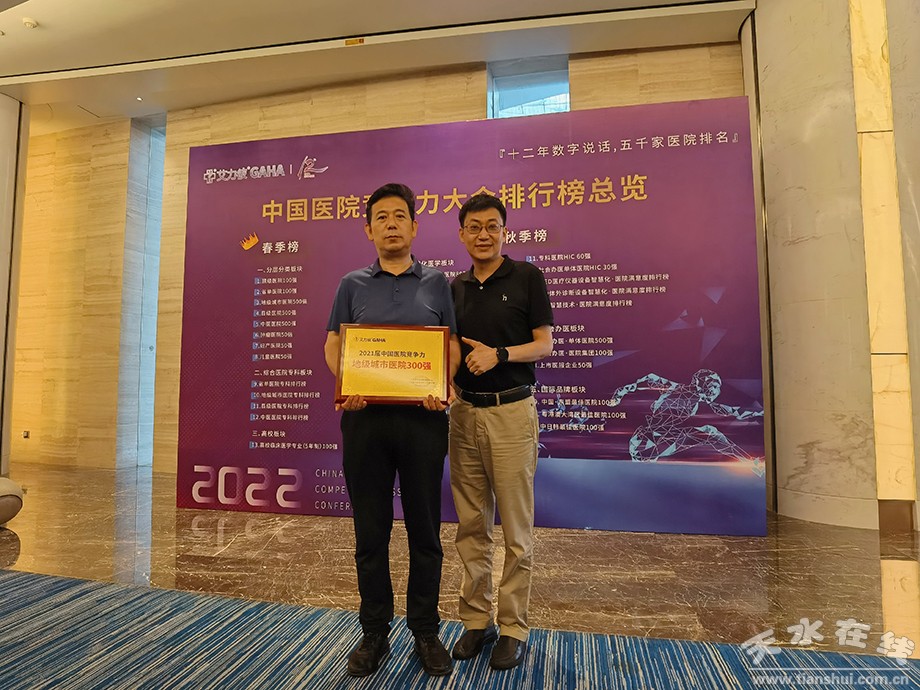 7月8日至9日,由廣州艾力彼醫(yī)院管理研究中心主辦的“2022中國醫(yī)院競爭力大會”在廈門舉行,市一院副院長成保勝帶隊參加會議。會上,2021屆中國醫(yī)院競爭力排行榜發(fā)布,天水市第一人民醫(yī)院再次榮登“全國地級城市醫(yī)院300強(qiáng)”。