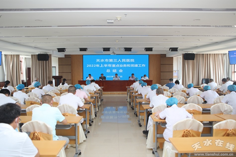 近日,天水市第三人民醫(yī)院召開2022年上半年重點(diǎn)業(yè)務(wù)暨黨建工作總結(jié)大會(huì),院領(lǐng)導(dǎo)班子及各科室主任、護(hù)士長(zhǎng)、科秘書共80余人參加。會(huì)議由院黨委書記丁志杰同志主持。