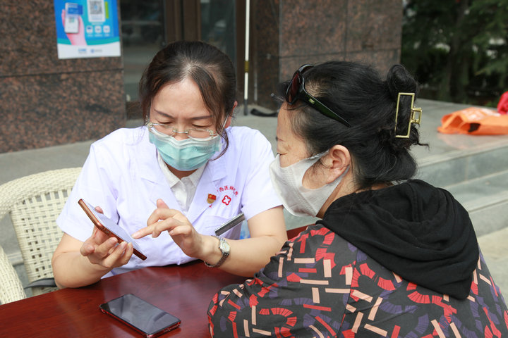 活動中,醫(yī)?乒ぷ魅藛T向社區(qū)居民介紹了醫(yī)保電子憑證具有方便快捷、全國通用、安全可靠等優(yōu)點(diǎn),現(xiàn)場指導(dǎo)如何使用支付寶APP進(jìn)行開通激活操作。同時(shí),結(jié)合當(dāng)前新出臺的醫(yī)保政策,積極向居民群眾講解,熱心接待居民群眾咨詢,面對面交流、心貼心溝通,為居民群眾答疑解惑,讓醫(yī)保政策走進(jìn)居民群眾、惠及居民群眾,切實(shí)讓居民群眾聽得懂、記得住、用得上。第六黨支部黨員在神經(jīng)內(nèi)科三病區(qū)主任葛近峰的帶領(lǐng)下,結(jié)合居民群眾需求,為居民群眾提供常見病、慢性病的咨詢、診斷和篩查,并免費(fèi)測量血壓。