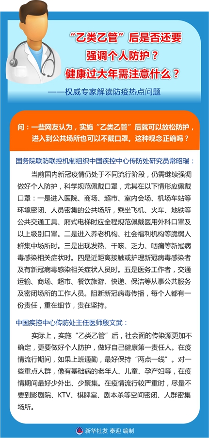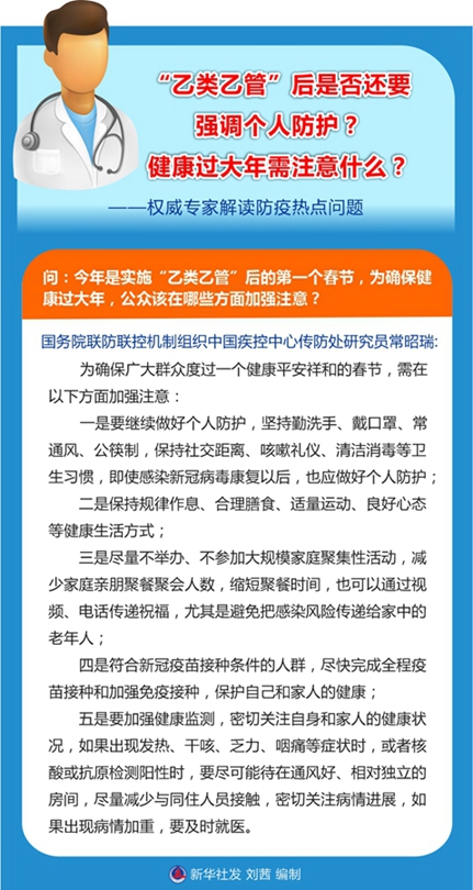 新華社北京1月13日電 題:“乙類乙管”后是否還要強調個人防護?健康過大年需注意什么?——權威專家解讀防疫熱點問題