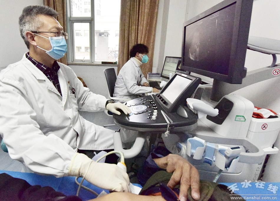 (2023年1月31日,天水市第一人民醫(yī)院超聲科主任為患者檢查。該科室日檢查患者1900余人次,首次突破日檢查量1500人次以上。)