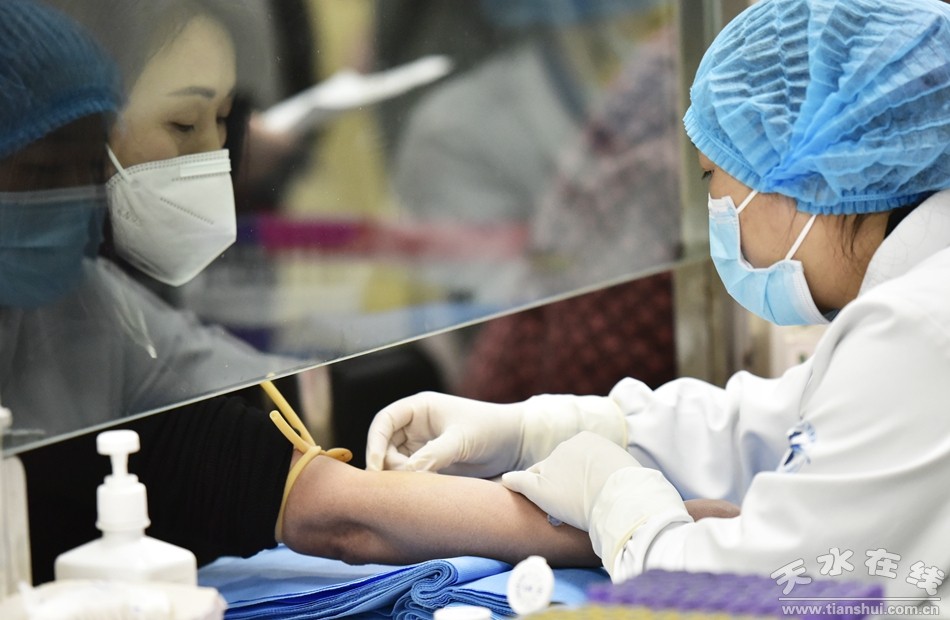(2023年1月31日,天水市第一人民醫(yī)院門診采血處護(hù)士為患者采血。)