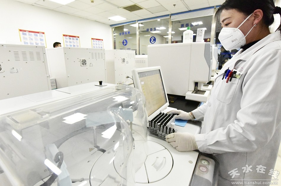 (2023年1月31日,天水市第一人民醫(yī)院門診化驗(yàn)室工作人員為患者做標(biāo)本檢查。)