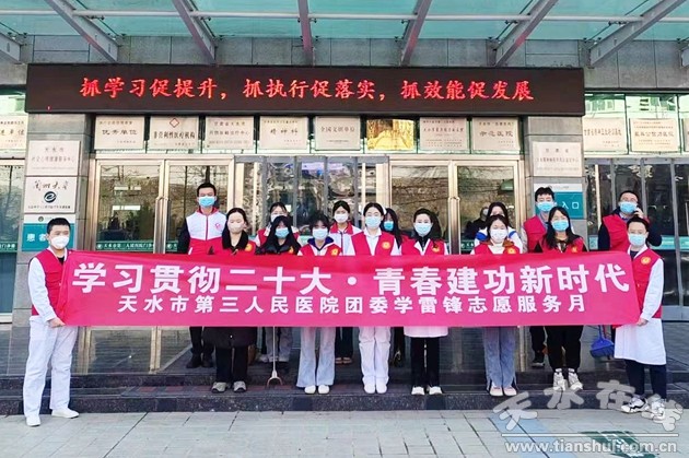 今年的3月5日是紀(jì)念毛澤東等老一輩革命家為雷鋒同志題詞60周年紀(jì)念日,也是第24個“中國青年志愿者服務(wù)日”。為深入學(xué)習(xí)貫徹黨的二十大精神和習(xí)近平總書記關(guān)于弘揚雷鋒精神重要講話重要指示批示精神,深刻把握雷鋒精神的時代內(nèi)涵,讓雷鋒精神在新時代綻放更加璀璨的光芒,進一步推動我院志愿者服務(wù)常態(tài)化,營造濃厚的學(xué)雷鋒、做好事、創(chuàng)文明、揚正氣的良好社會風(fēng)尚,推動三抓三促行動走深走實,3月3日下午,我院聯(lián)合天水郡街道王家磨社區(qū)開展了“義診進社區(qū),溫暖入人心”志愿服務(wù)進社區(qū)系列活動。