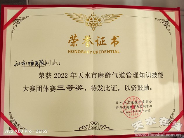 3月25日,由天水市衛(wèi)生健康委員會(huì)和麻醉醫(yī)療質(zhì)量與控制中心聯(lián)合舉辦的2022-2023首屆麻醉氣道管理知識技能大賽隆重召開,天水市中醫(yī)醫(yī)院麻醉科醫(yī)師團(tuán)隊(duì)榮獲團(tuán)體三等獎(jiǎng)。