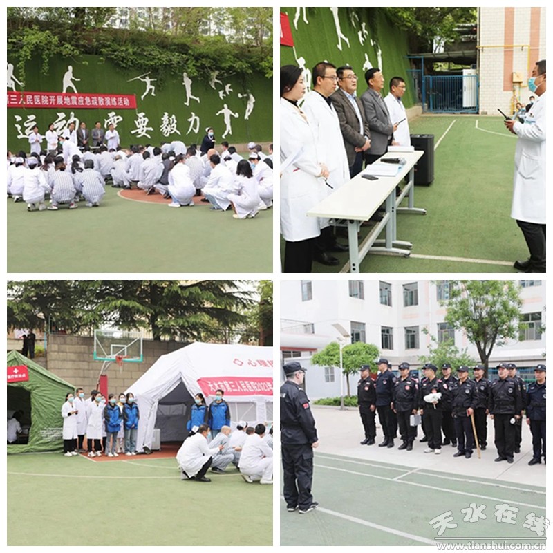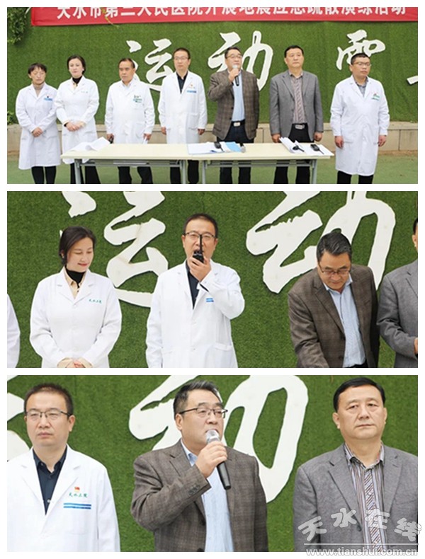 在全國(guó)第十五個(gè)防災(zāi)減災(zāi)日來(lái)臨之際,為進(jìn)一步提高全院應(yīng)對(duì)突發(fā)性災(zāi)害事件的水平和應(yīng)急救援能力,最大限度減少突發(fā)事件造成的損失及人員傷亡,切實(shí)保護(hù)全院醫(yī)患生命財(cái)產(chǎn)安全,5月10日,天水市第三人民醫(yī)院組織開展了地震應(yīng)急疏散和救援演練活動(dòng)。我院領(lǐng)導(dǎo)班子成員、相關(guān)臨床職能科室300余人參與此次地震應(yīng)急疏散演練。天水郡街道辦事處、王家磨社區(qū)相關(guān)領(lǐng)導(dǎo)蒞臨現(xiàn)場(chǎng)觀摩并指導(dǎo)。