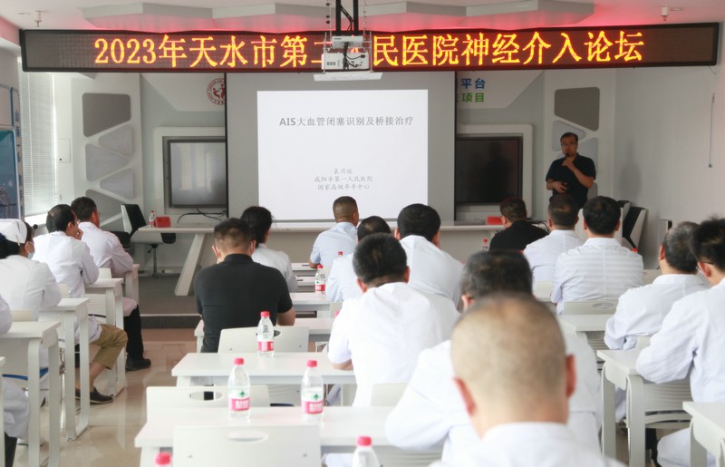 為進(jìn)一步推進(jìn)醫(yī)院卒中中心建設(shè),持續(xù)推動(dòng)“三抓三促”行動(dòng)走深走實(shí),6月8日,天水市第二人民醫(yī)院在內(nèi)科大樓14樓會(huì)議室舉辦神經(jīng)介入前沿診療技術(shù)論壇。特邀國(guó)內(nèi)知名專(zhuān)家、陜西省咸陽(yáng)市第一人民醫(yī)院神經(jīng)內(nèi)科袁興運(yùn)教授、西電集團(tuán)醫(yī)院神經(jīng)內(nèi)科姚力教授和市二院副院長(zhǎng)高國(guó)明出席會(huì)議。會(huì)議由市二院腦血管介入科田建平主任主持。神經(jīng)內(nèi)科、神經(jīng)外科、介入科、急診科、康復(fù)科和重癥醫(yī)學(xué)科醫(yī)護(hù)人員約80余人參加了論壇。