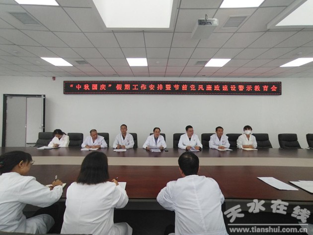 9月27日下午,天水市第五人民醫(yī)院召開了中秋國慶假期工作安排暨節(jié)前黨風(fēng)廉政建設(shè)警示教育會(huì)議,會(huì)議由黨總支書記、院長全福才主持,院領(lǐng)導(dǎo)班子成員、各黨支部支委委員、各科室科長、負(fù)責(zé)人參加了會(huì)議。