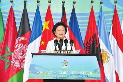 劉延?xùn)|在演講中指出,2000多年來,絲綢之路見證了東西方文明交流互鑒的不平凡歷程!昂推胶献鳌㈤_放包容、互學(xué)互鑒、互利共贏”的絲路精神,正煥發(fā)出新的時代生機。我們應(yīng)樹立多樣共存、互鑒共進、合作共享的人類文明觀,積極構(gòu)建國家間文化合作新機制,深化人文交流,尊重不同文明,加強文化遺產(chǎn)保護,推動文化傳承創(chuàng)新,讓現(xiàn)代文明成果更多惠及各國人民。敦煌自古就是東西方文化交匯之處,要通過敦煌文博會,為絲綢之路沿線各國深化文化合作、人文交流搭建平臺,使“一帶一路”建設(shè)造福沿線各國人民。