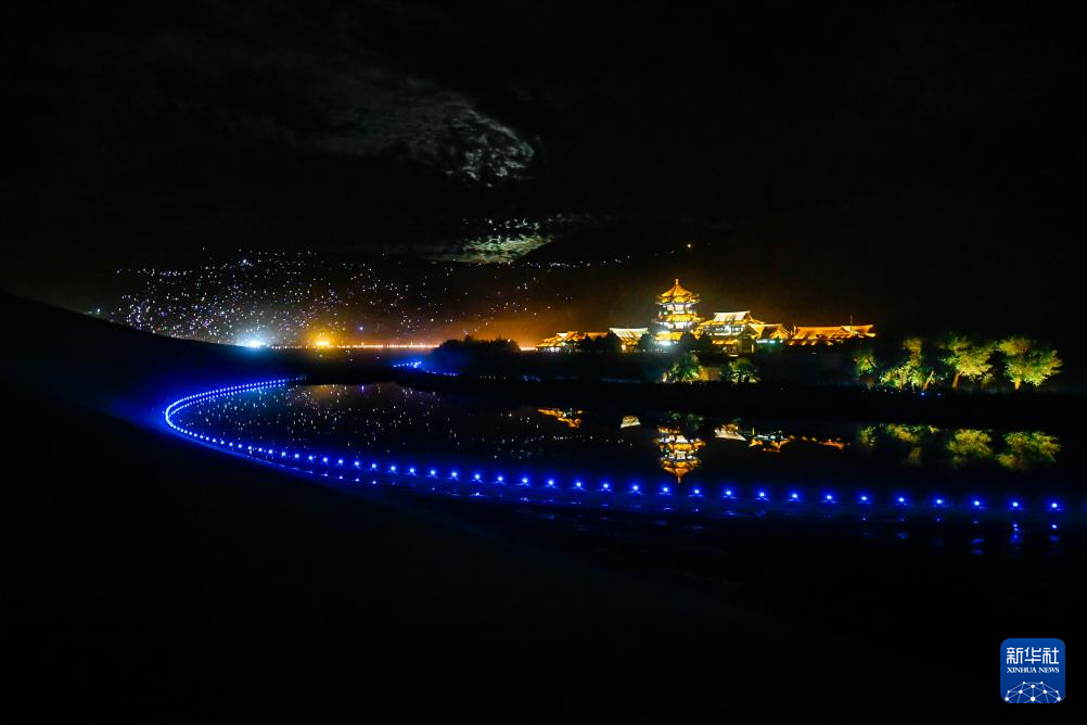 7月20日晚,游客在敦煌鳴沙山月牙泉景區(qū)參加沙漠萬(wàn)人星空演唱會(huì)。
