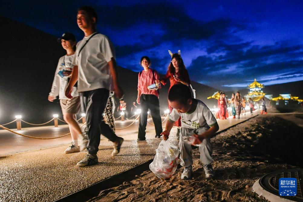今年暑期,隨著沙漠萬(wàn)人星空演唱會(huì)火爆出圈,甘肅省敦煌市鳴沙山月牙泉景區(qū)日均接待游客達(dá)2萬(wàn)人次。景區(qū)推出的“沙山洗臉”公益活動(dòng),通過(guò)撿垃圾兌換小禮品等方式,引導(dǎo)游客在享受沙漠萬(wàn)人星空演唱會(huì)浪漫的同時(shí),共同守護(hù)鳴沙山的生態(tài)環(huán)境。