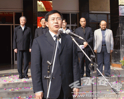 天水師范學(xué)院黨委書記杜松奇在儀式上致辭。他代表學(xué)校黨委、行政向各位領(lǐng)導(dǎo)和社會(huì)各界長(zhǎng)期以來(lái)對(duì)天水師范學(xué)院的建設(shè)和發(fā)展給予的關(guān)心和支持致以誠(chéng)摯的感謝,并預(yù)祝本次集郵文化活動(dòng)取得圓滿成功。他說(shuō),五十年校慶是學(xué)校建設(shè)和發(fā)展史上的重要里程碑,是載入學(xué)校發(fā)展史的標(biāo)志性事件,是推動(dòng)學(xué)校各項(xiàng)工作跨越式發(fā)展的良好機(jī)遇,是進(jìn)一步擴(kuò)大學(xué)校知名度和影響力的重要契機(jī),也是全校師生員工和廣大校友共同期盼的盛事。通過(guò)五十年校慶,我們將進(jìn)一步激勵(lì)全校師生員工為學(xué)校發(fā)展拼搏奮斗,團(tuán)結(jié)廣大校友為建設(shè)學(xué)校獻(xiàn)計(jì)出力,凝聚各種社會(huì)資源,進(jìn)一步開(kāi)創(chuàng)天水師范學(xué)院發(fā)展建設(shè)的新局面。郵票是微型百科全書,是國(guó)家的名片。郵票是世界各國(guó)歷史文化與文明的優(yōu)秀結(jié)晶,蘊(yùn)涵著不同民族特有的思維方式、價(jià)值體系、情感模式;郵票所反映的是自然界中最美好的事物,寄托著人類積極的人生態(tài)度和向往追求;郵票以其獨(dú)具的魅力成為了人類豐富多彩的文化寶庫(kù)中的重要組成部分。郵票雖小,但方寸之間涵蓋了人文、地理、歷史文物、自然風(fēng)光、經(jīng)濟(jì)發(fā)展、社會(huì)進(jìn)步等人們生活的各個(gè)方面。在校園開(kāi)展以健康典雅的郵票為載體的集郵展,能讓師生把文化知識(shí)學(xué)習(xí)、美育教育和思想品德教育有機(jī)地結(jié)合起來(lái),不僅延續(xù)了郵票的知識(shí)性、藝術(shù)性、思想性和娛樂(lè)性,同時(shí)能使師生擴(kuò)大視野,增長(zhǎng)知識(shí),培養(yǎng)能力,發(fā)展個(gè)性特長(zhǎng),增進(jìn)身心健康。師生參與各種集郵文化活動(dòng)的過(guò)程,就是發(fā)展多方面能力、提高綜合素質(zhì)的過(guò)程,同時(shí)又能享受藝術(shù)的熏陶、精神的升華。觀看郵展能夠“增長(zhǎng)知識(shí),陶冶情操”這也是國(guó)際共識(shí)。在此英才匯聚、共謀發(fā)展的盛會(huì)來(lái)臨之際,為慶祝天水師范學(xué)院建校五十周年,甘肅省郵政總局發(fā)行了《天水師范學(xué)院建校五十周年紀(jì)念郵冊(cè)》、紀(jì)念卡折、紀(jì)念封等系列郵品,它記錄了天水師范學(xué)院五十年發(fā)展的成就,具有極高的文化價(jià)值、觀賞價(jià)值和收藏價(jià)值,不僅豐富了校慶文化活動(dòng)內(nèi)容,而且能讓社會(huì)各界和廣大校友更深入地關(guān)注、了解天水師范學(xué)院,進(jìn)一步提升學(xué)校的知名度和影響力。我希望通過(guò)此次郵展,讓我們加強(qiáng)交往、增進(jìn)友誼,更加激勵(lì)天水師范學(xué)院師生立足西部,團(tuán)結(jié)奮斗,促進(jìn)學(xué)院在教育教學(xué)上去實(shí)現(xiàn)新的發(fā)展、新的突破、新的跨越,從而為全省教育事業(yè)做出新的更大的貢獻(xiàn)。