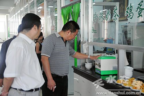學(xué)院黨委 書記王志年(右一)、院長曹愛明(右二)檢查學(xué)生餐廳