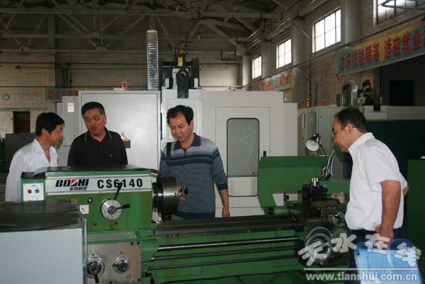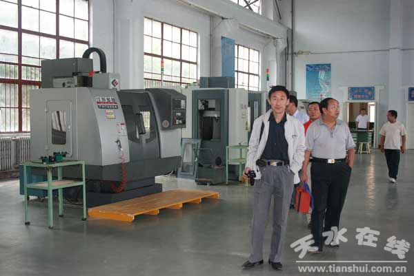 代表們在北校區(qū)參觀普通機(jī)床實訓(xùn)基地