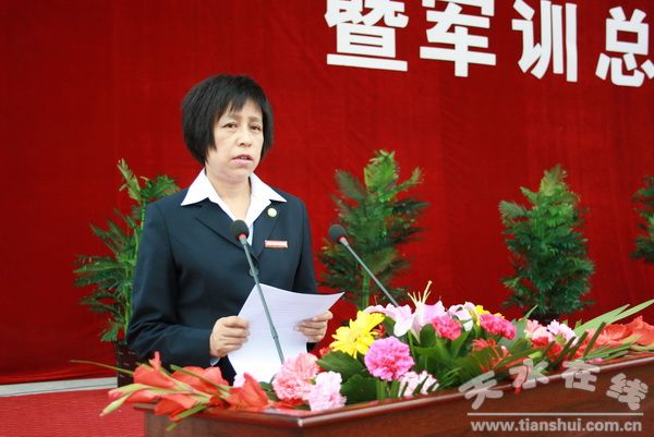 李宗義院長向承訓(xùn)部隊贈送了錦旗,并在天水陸軍預(yù)備步兵役旅首長陪同下檢閱了學(xué)員方隊。教師代表、學(xué)生代表先后上臺發(fā)言。
