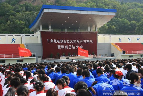 9月16日下午,陽光明媚,2010級新生開學(xué)典禮暨軍訓(xùn)總結(jié)大會在甘肅機(jī)電職業(yè)技術(shù)學(xué)院田徑運動場隆重舉行。省工信委財務(wù)處處長丁小平,承訓(xùn)部隊領(lǐng)導(dǎo),院黨委書記、院長李宗義等學(xué)院領(lǐng)導(dǎo)及部分中層干部在主席臺就座,全校師生共計4000多人出席了開學(xué)典禮暨軍訓(xùn)總結(jié)大會。黨委委員、副院長堅葆林主持了大會。